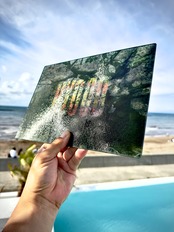 入り口は山口県。そこから広島、島根、鳥取、兵庫と回っていきます。(岡山はまた今度ということで...汗)県ごとに印象に残ったシーンから数枚写真を選び、一枚に重ねたものを一つの作品とします。➕何か利用価値のあるものとしてアウトプットしたいなと模索したところ、ガラスのまな板になりました(笑